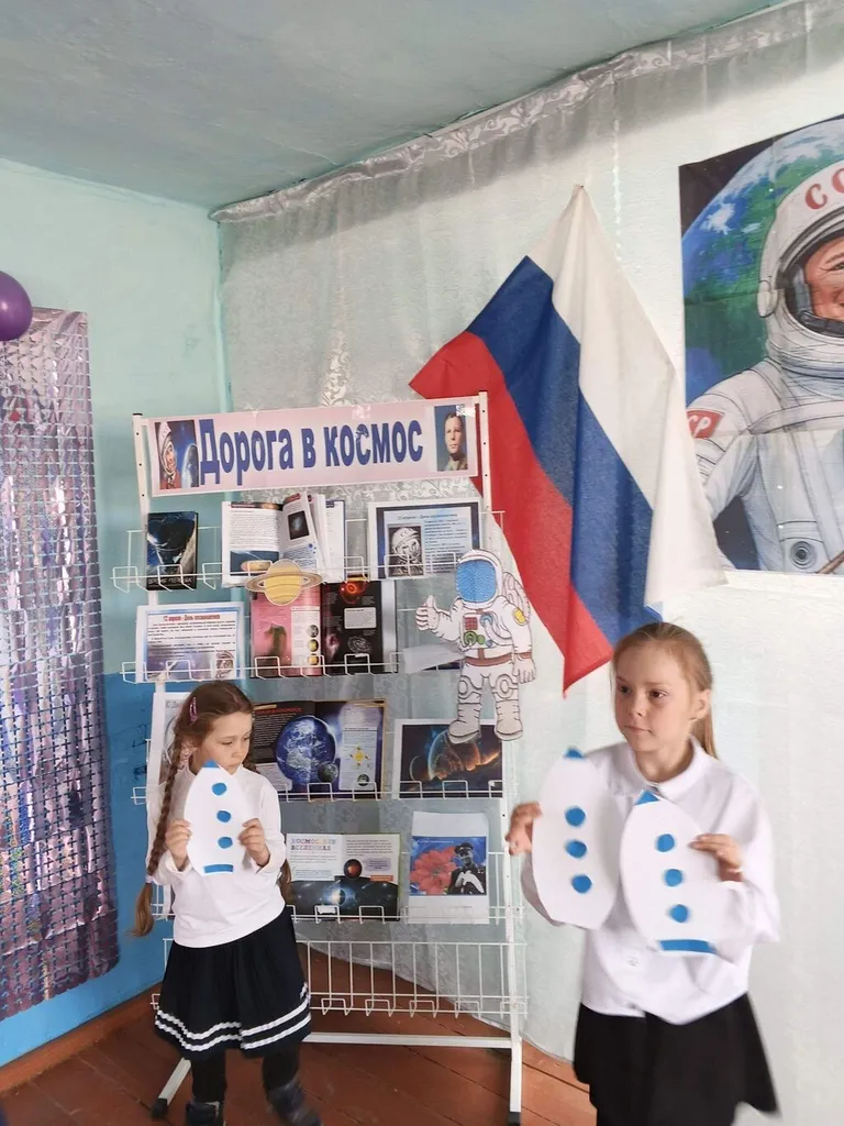 В начале провели обзор книжной выставки "Дорога в космос", предложили ребятам прочитать книги о космосе и узнать что то новое для них неизвестное.
